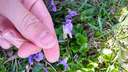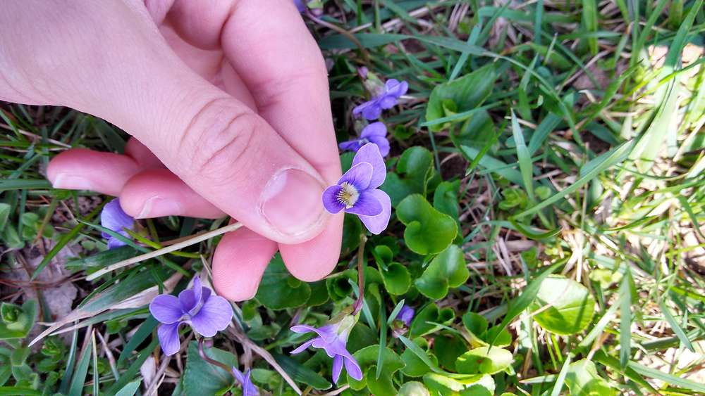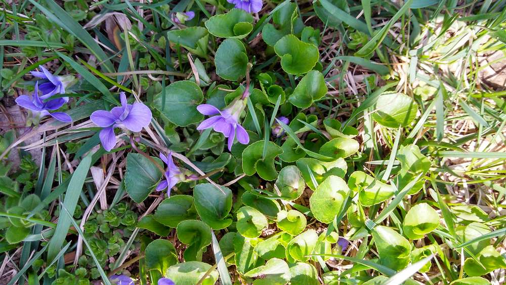 Dear Sorgenman, the flowers you have posted belong to a species of Viola (violet). On lawns, hybrid individuals with Viola cucullata (marsh violet) and/or Viola sororia (woolly violet) are common. These are edible species, both the leaves and the flowers. You can enjoy them raw in salads, etc. It is always good to try a small serving first if this is a new food to identify how your body reacts to it. Enjoy.