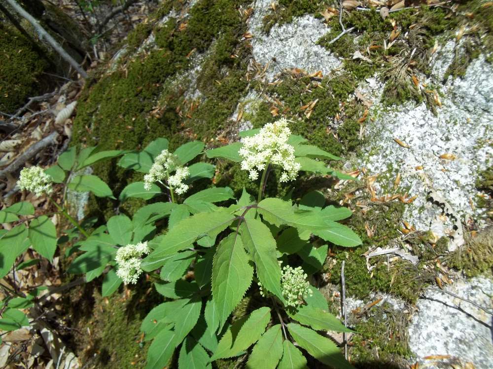 Would you mind helping me ID the plant in the attached picture? I was hiking on a rustic trail in the inner section of Cape Ann, Ma (close to Dogtown). This plant had two woody stems, one short upright and the4 foot stem pictured, was flopping over a rock. I think it resembles Sambucus. The environs were rocky moraine wetland. - Bruce