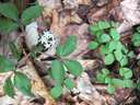 The McCabe Forest in Antrim, NH is a mixed soft/hardwood forest. May 2, after heavy rains, much of it was very wet. These flowers were spreading in dense patches. The first photo is Anemone quinquefolia. To its right, a small white cluster. The second photo shows an open cluster: Panax trifolius? My books show bigger umbels.