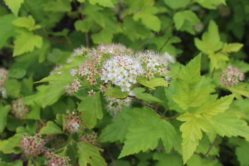 These two photos were taken 13 seconds apart in mid June, in Peterborough, NH. Is there a spiraea with this maple-like leaf? (clearer in second photo)