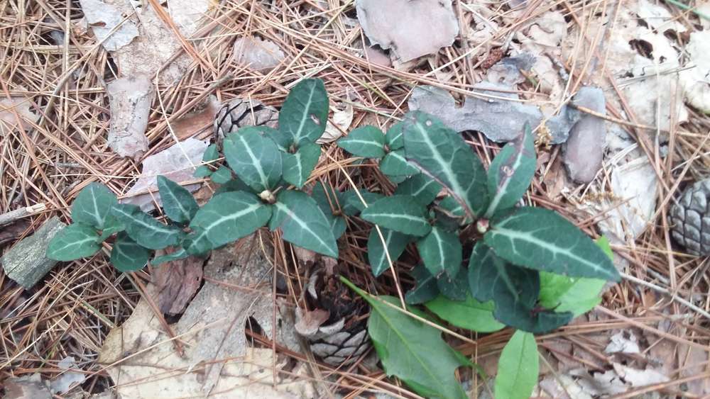 Dear lordarchery, your plant is Chimaphila maculata (spotted prince's-pine), a relative of the more common Chimaphila umbellata (noble prince's-pine, also called pipsissewa). This plant is relatively common in southern New England but becomes uncommon and rare as one moves north into ME and NH. Best wishes.