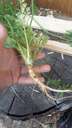 Dear lordarchery, I can't identify this plant with 100% confidence from the images attached, but you do appear to have photographed Daucus carota (wild carrot). The pale taproot you photographed can be bruised and it will yield a distinctive carrot odor if this hypothesis is correct. Daucus carota is a common weed of early successional habitats and would be expected to be found in a tilled garden setting. When flowers/fruits appear, we can confirm this if you would like.