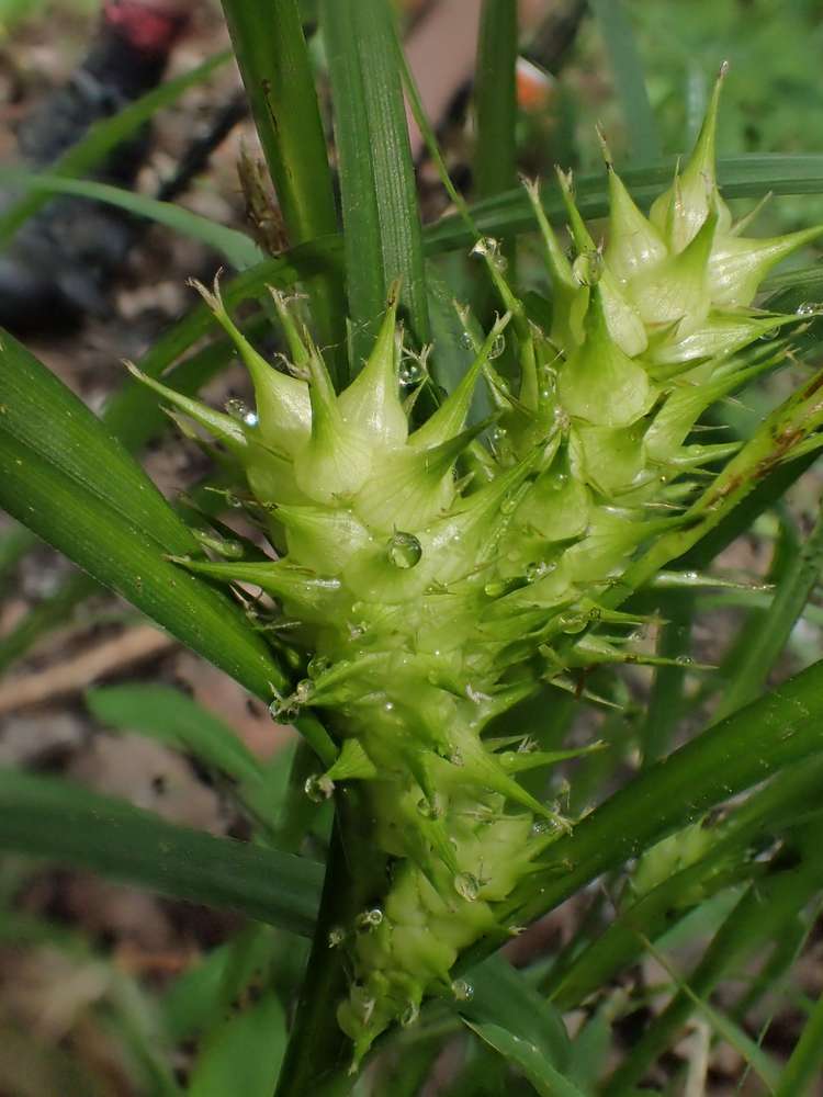 Dear Davidreik@comcast.net, you haven't worn out your welcome at all. Please, keep posting questions as it helps other people as well. Your plant is likely Carex lupulina (hop sedge). It has the very large inflated perigynia that you have photographed. This species is typical of shorelines and wetlands (mostly). Best wishes.