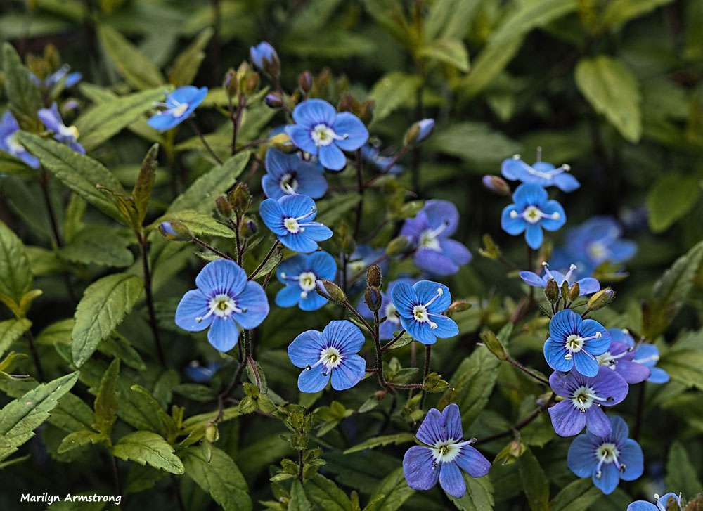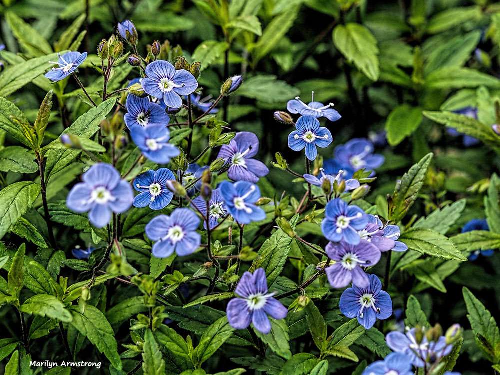 One more "what is it" flower. I didn't plant it, but it doesn't look wild to me. These are very small, about the size of a violet, but sturdier. We are in south central Massachusetts -- the Blackstone River valley.