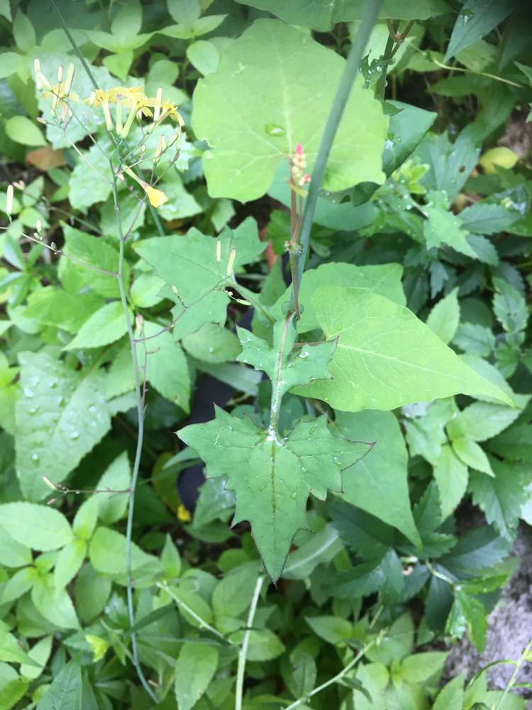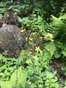 This plant with 5-petaled yellow flowers grows along the Halfway House Trail on the south side of Mt. Monadnock in Jaffrey, NH. The petals are split, reminding me of a pink. The leaf (it is the lobed leaf with a spear-like point in the second photo) looks very much like that of a Prenanthes. What do you think this is? Do composites always have disc and ray flowers?