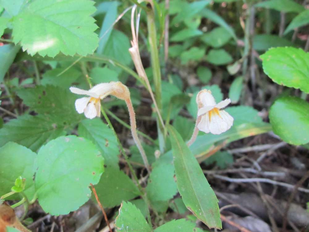 Dear MaryBeverly@Brook, your plant is a native, parasitic species called Aphyllon uniflorum (one-flowered broom-rape). It has been referred to as Orobanche uniflora in many manuals and guides that cover this region. Best wishes.