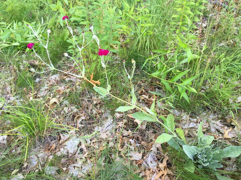 Dear huahsingyen, the plant with small blue flowers is likely Vicia cracca (cow vetch), a species that is found in open opens throughout much of New England. The species with dark red flowers is Lychnis coronaria (mullein lychnis), a planted species that occasionally escapes cultivation. Best wishes.