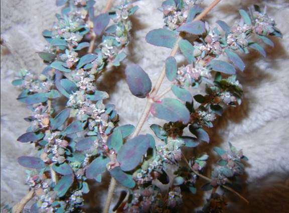 This plant is found in open areas; dryer sandier towns of northern Connecticut. It seems to need much sunshine. Its odd color makes it different than others that also have tiny leaves and creep along the ground. Most landscapers consider it a weed; difficult to remove, although a vinegar and soap spray tends to wither the greens. It tends to grow along the ground putting down new roots as it moves along. We cannot identify it; any ideas?