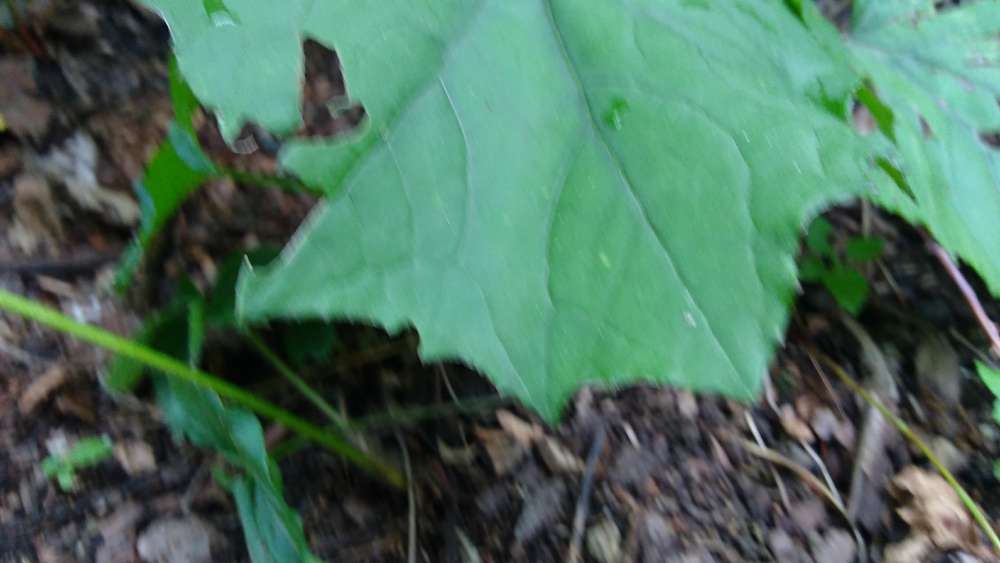 Hi, Can you please identify this large-leaved plant? It is a ground hugging plant, growing in an area that probably gets light no more than 1/3 of the day. It only gets water when it rains. It has been growing since mid-July near the foundation of our house in Brookline, MA. Thanks!