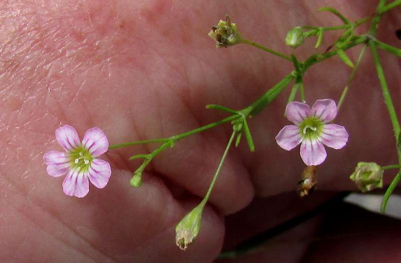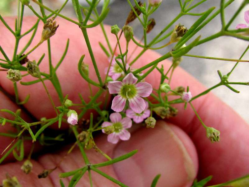 Garden solutions blog cannot id this one, and neither can I. Cannot find in any guidebook. I've been frustrated by this plant for a few years. Very similar in many ways (not the flower) with sand spurrey, but it is not that. In two places by the side of the road in my locale, Harrisville NH, dry places. This flower blooms early and stays blooming into early Fall. Leaves are whole, not toothed and opposite. 5 petals, pistil hard to see, difficult because of how tiny it is. hard to photograph.