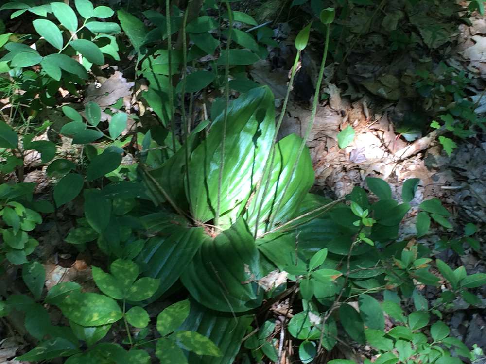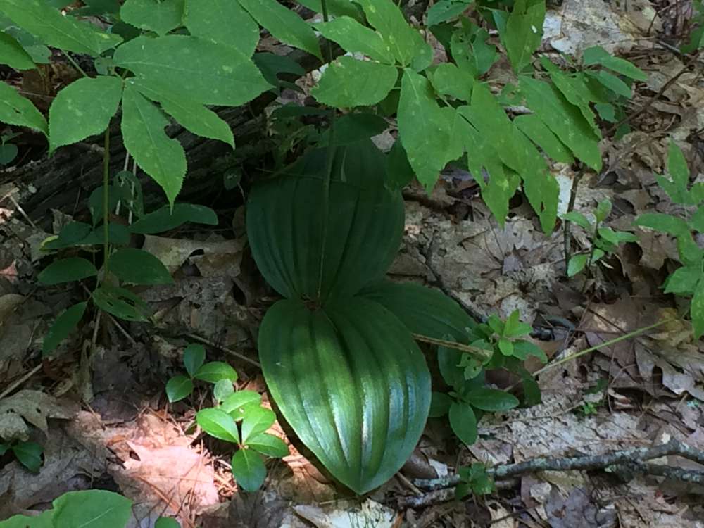 I saw this plant while walking at Rachel Carson National Wildlife Refuge. I have not been able to ID it and there wasn't any staff available to ask. It was about 6 feet off trail growing with sarsaparilla, blue bead lily, Canada mayflower, Solomon's seal and low bush blueberry in a forested understory of mainly pines and oaks. The spathes were between one and two feet tall and the leaves were about 8 inches long (these are approximations as I didn't want to go off trail).