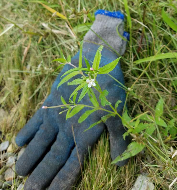 Dear Jbrine1, you have photographed a species of Epilobium (willow-herb), this one a native member of the evening-primrose family. You likely have Epilobium ciliatum (fringed willow-herb), though I would need to see the hairs of the fruits to be confident of this answer. Best wishes.
