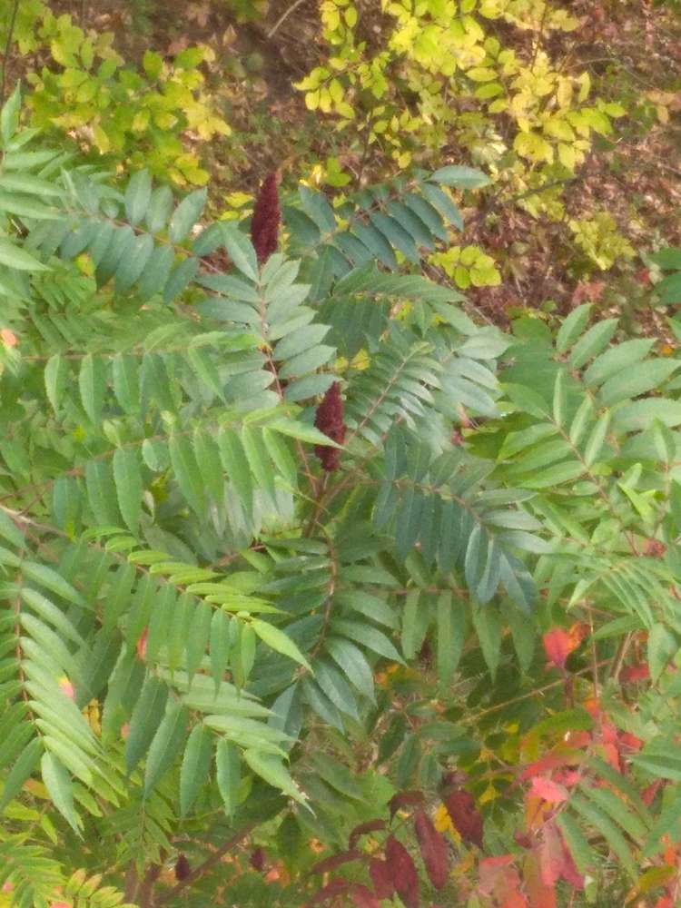 Dear switbut3rfly, this is Rhus typhina (staghorm sumac). This one is fruiting and if you examine the fruits closely, you will see they are covered with red, sour-tasting hairs.