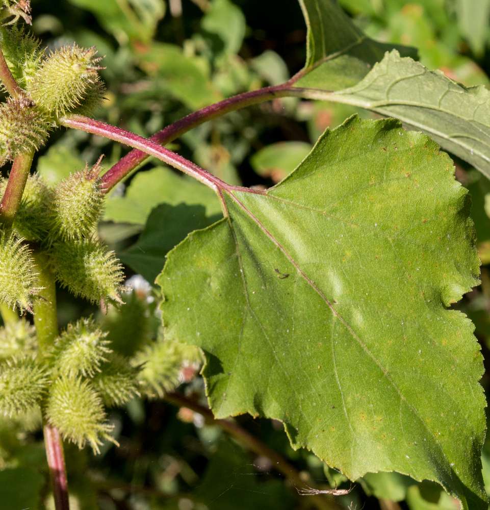 Dear joshl, your plant is Xanthium strumarium (cocklebur), a member of the aster family. The distinctive burrs that enclose the flowers/fruits are a good method of identification (note that the burrs do not resemble Arctium [burdock]). Best wishes.