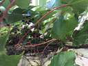 I'm trying to find the type of ivy this is. It grows all along walls on our campus at the University of Minnesota. It has red stems and blue berries that grow on it. The bigger leaves have about 3 points (I don't know what the points are called). Please help me identify the type of ivy this is.