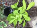 This popped up a few weeks ago. We've been told it's a hickory tree. We do have some shag bark hickories on the opposite side of our house. If it is a hickory, we are going to transplant it. Thanks for your help. It seems to be growing off a big tap root.