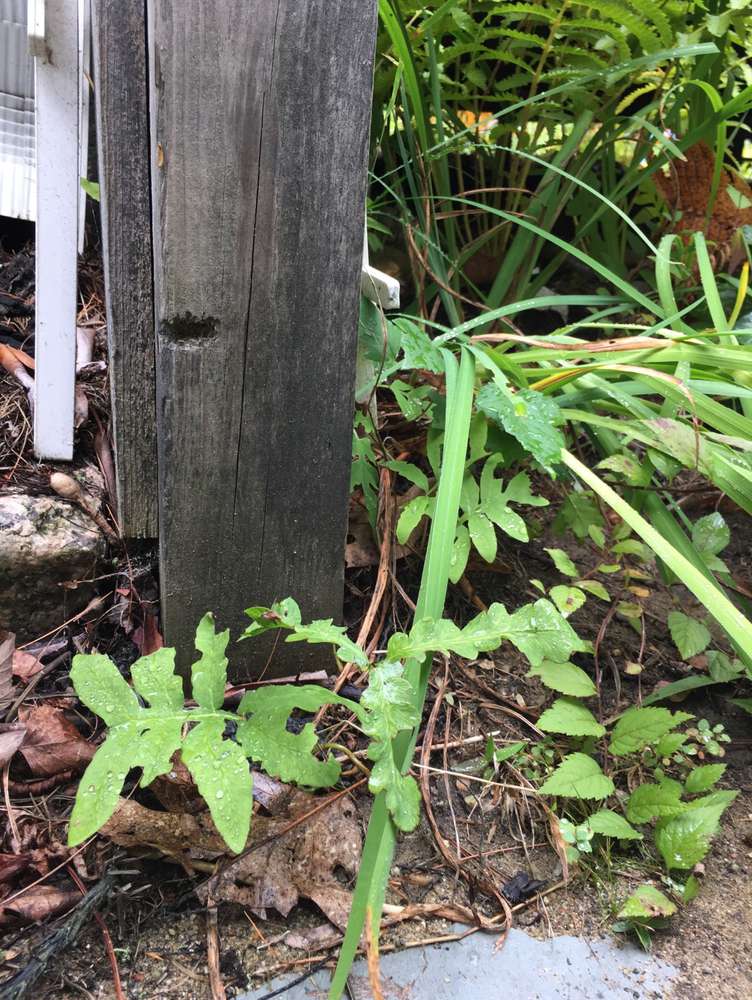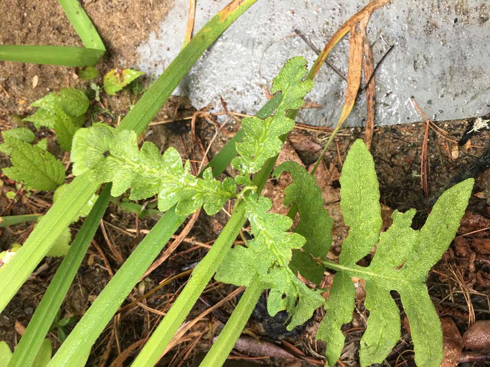 This sensitive fern on the left has an interesting spoked form. It's neighbor has a typical form. Might this be the result an environmental mutation?