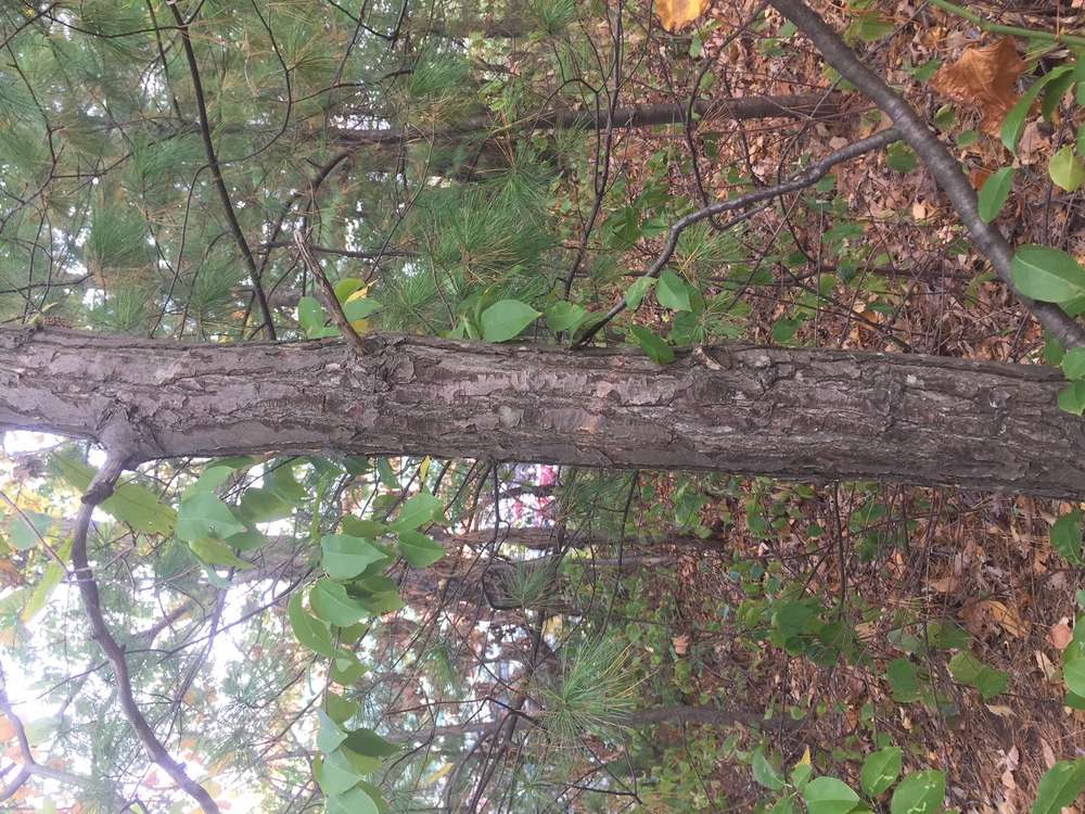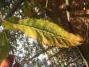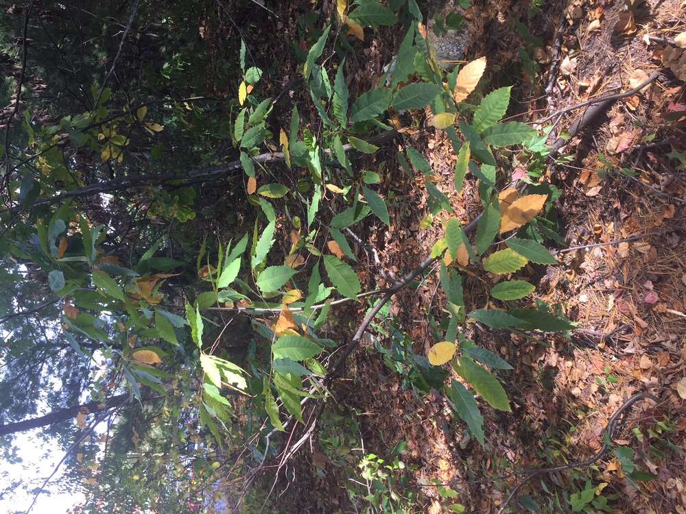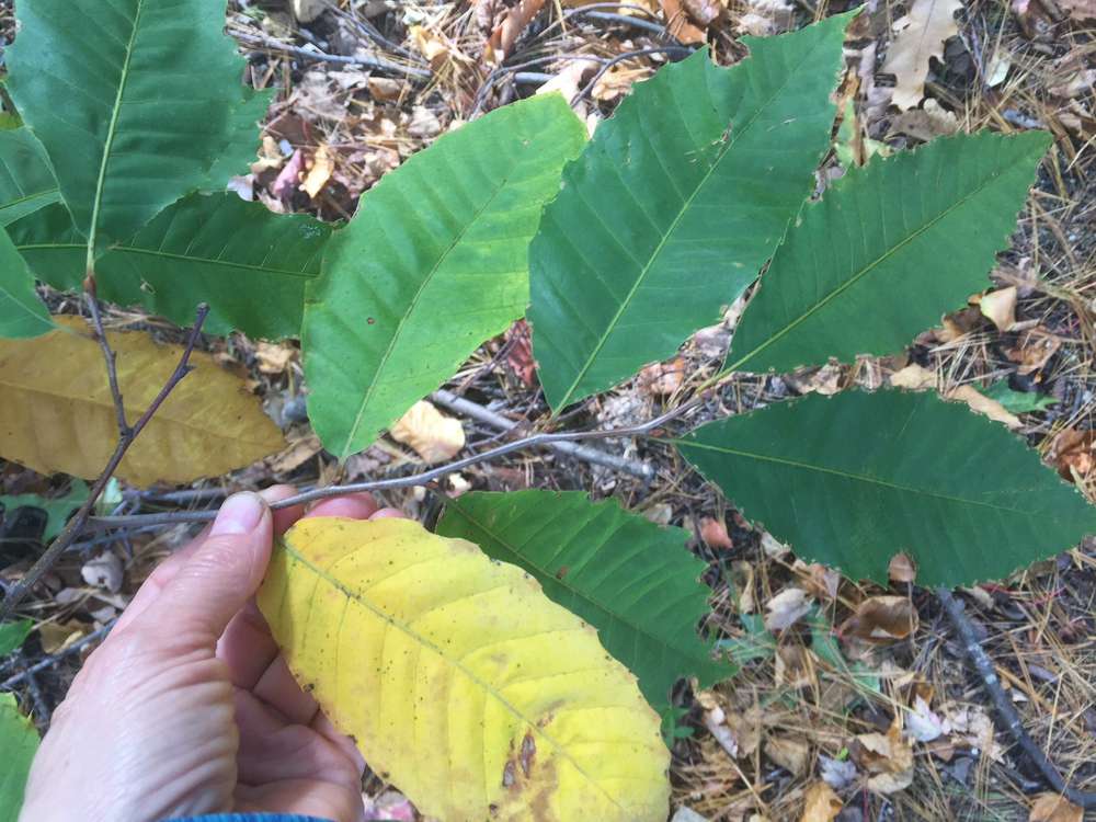 Dear bkatzenberg, you have photographed Castanea dentata (American chestnut). If you note, the leaf blades have fairly pronounced, sharp teeth (Quercus meuhlenbergii would have blunt lobes). Nice find, it is a pleasure to see these trees still growing in New England.