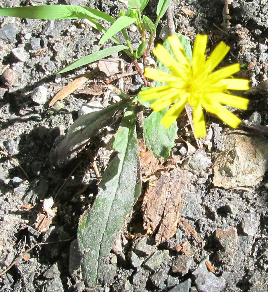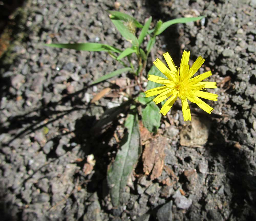 I photographed what I thought was a hawkweed flower, but have come a crossed a reference that identifies the flower as "fall dandelion." The basal leaves do not appear to be scalloped. It was growing in a crack of asphalt bordering a creek. Thank you in advance. CY