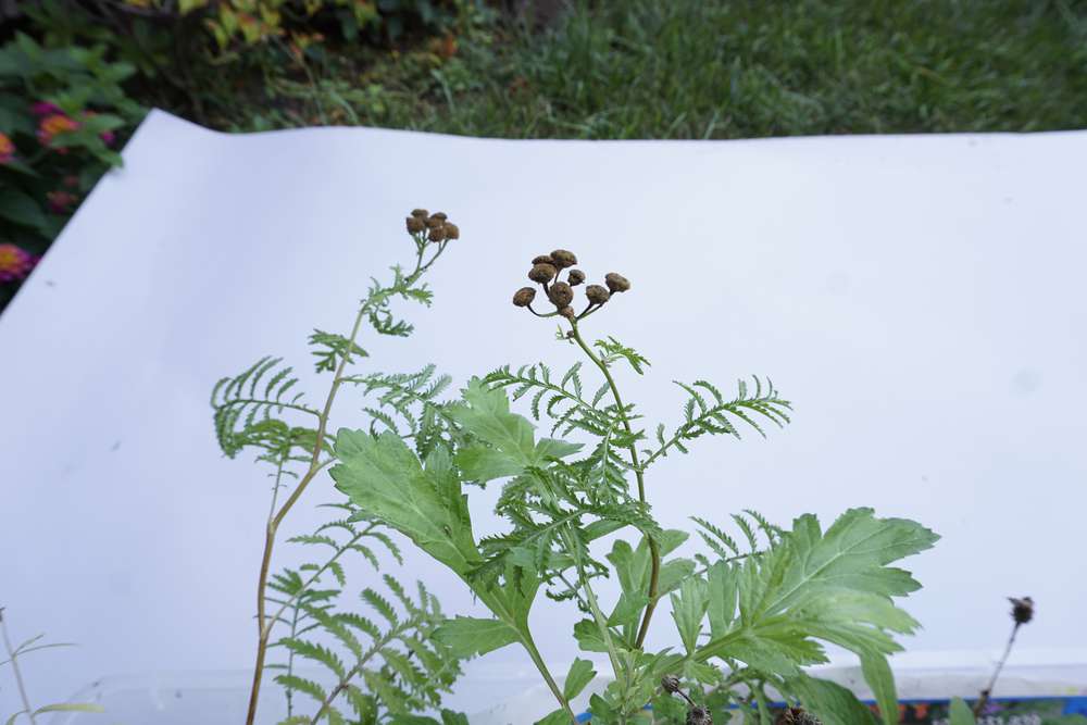 Dear whtien, the flowering plant in the photograph is Tanacetum vulgare (common tansy), a non-native member of the composite family. If you crush a leaf, you will notice a strong fragrance.