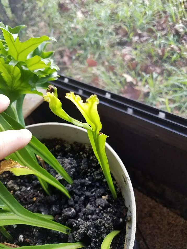 Hello, I have this amazing houseplant on my porch and cant seem to find it ANYWHERE! I have even asked several staff members at local nurseries and nothing! Only answer I heard that comes a little close is that its related to an elk or staghorn fern. Help! :-) Should I be growing it in something else? Thanks,