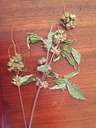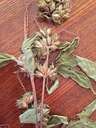 Dear Shellbi, your plant appears to be Ambrosia trifida (giant ragweed), a member of the Asteraceae. The staminate flowers have all fallen off the upper parts of the capitulescence.