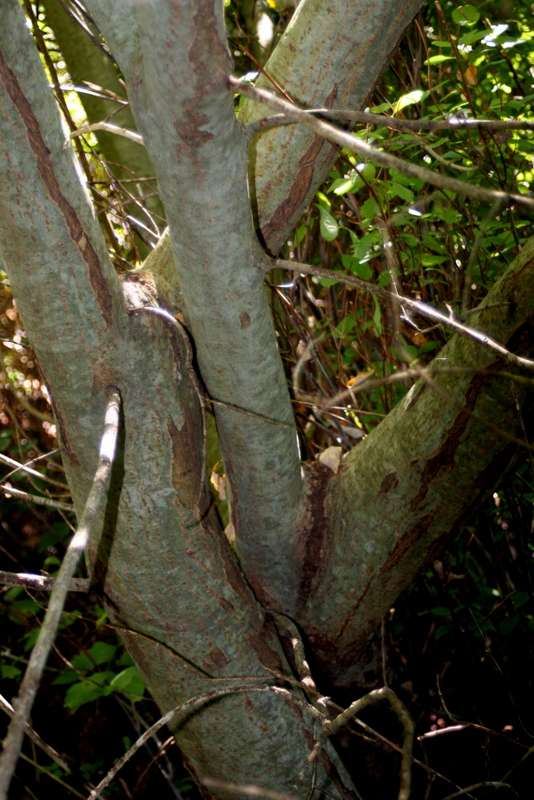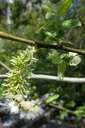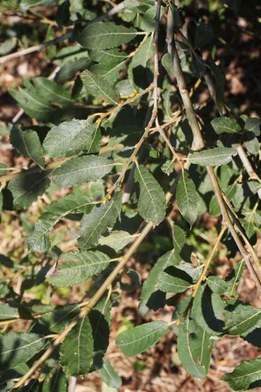 Dear SueLB, you have photographed a willow (genus Salix). But without location information, I can't assist you. What is wonderful is that you've provided a number of images (very helpful), but I don't know where in the world this image was taken. It is a species similar to Salix cinerea or Salix humilis, but I can't tell you which one without more information. To best help you, I need photographs, location, and habitat. I'm sorry I couldn't be of more help.