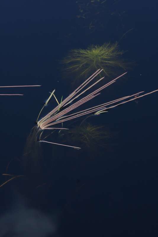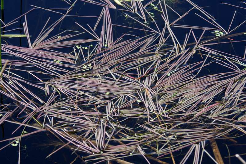 Dear SueLB, this is another one that I need a closer image of to help you. There are some species of grasses (such as Zizania and Glyceria) that have floating leaves such as this (Zizania--wild rice--does only for a portion of the year). Another genus, Sparganium (burr-reed) has some species that produce floating leaves as well. I can't tell you which of these three options it is without more details, but, hopefully knowing this will help you next year because you need only identify which of these choices it is. Best wishes.