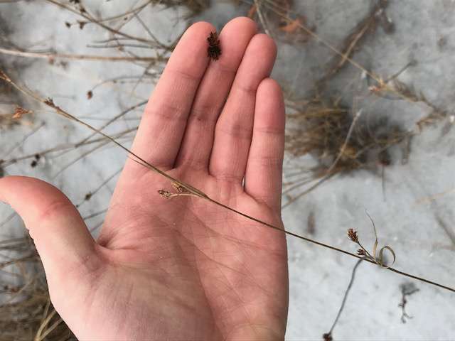 Hello! this plant may require more information and another picture during the growing season. This was approximately 1.5 ft in height in a freshwater emergent wetland on a frozen pond. The grass appeared to grow in loose clumps. Inflorescence was present on branches on the main axis. The plant was located in Stonington Connecticut.