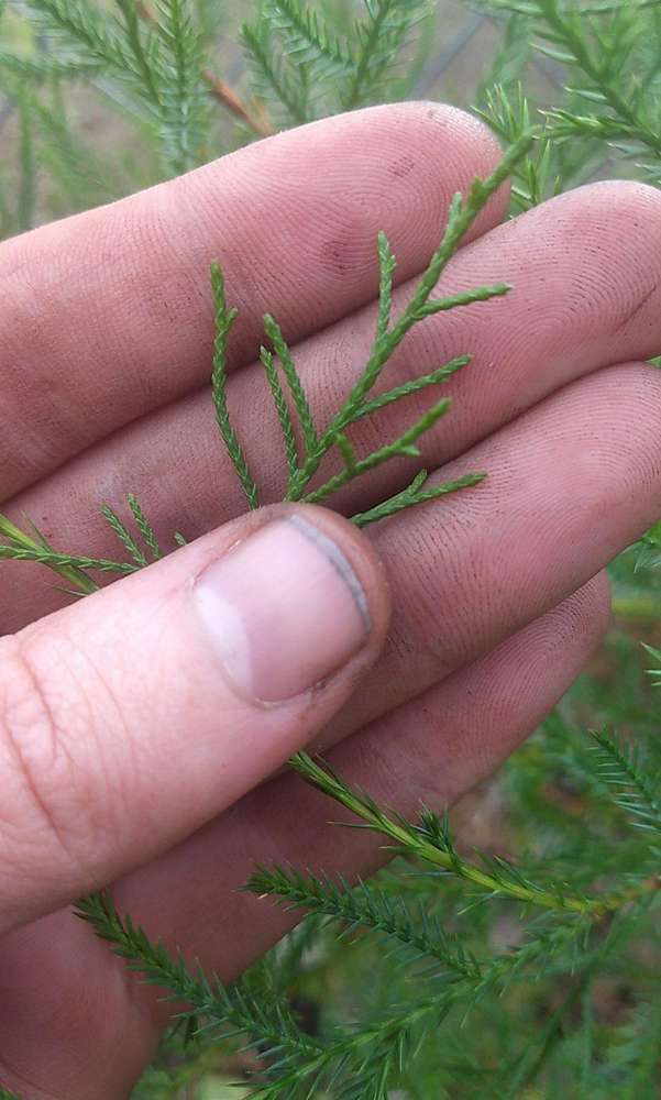 Hi. I'm really interested in finding out the name of this beauty so that I can plant it in an appropriate spot. Thank you!! :-). Kinda looks like a juniper to me. But I'm no botanist. Just getting into gardening. What I'm holding in my hand shows what the stems look like before they turn into tiny looking pines. Any help would be extremely appreciated. Thanks again.