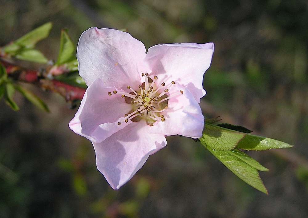 Hello. I've been struggling with this one for some time, now. The petals are shaped somewhat like the Weigela we have on the property at Joppa Flats Education Center, Newburyport, but the leaves and anthers and stamens seem more akin to Prunus persica. I couldn't find a woody plant with flowers like in the Guide. Photographed in Early May.