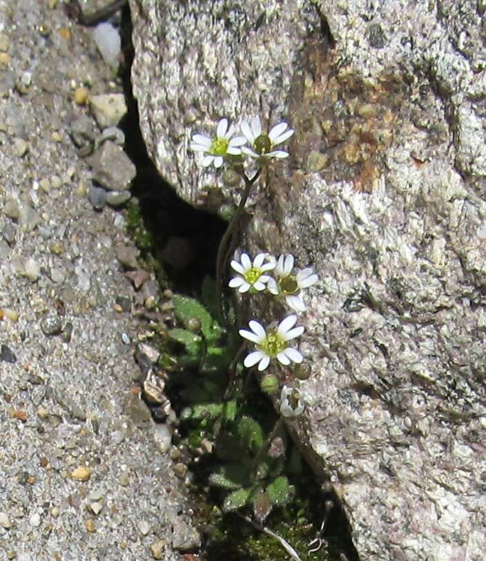 Good afternoon I just observed a small whit flower in my garden with deeply notched petals. The flower had four petals and a single ovary. The flower measure about 5 mm under a microscope. The image is very similar to Cerastium diffusum, sea mouse ear. I would appreciate your comments. Thank you in advance Ed Rodges