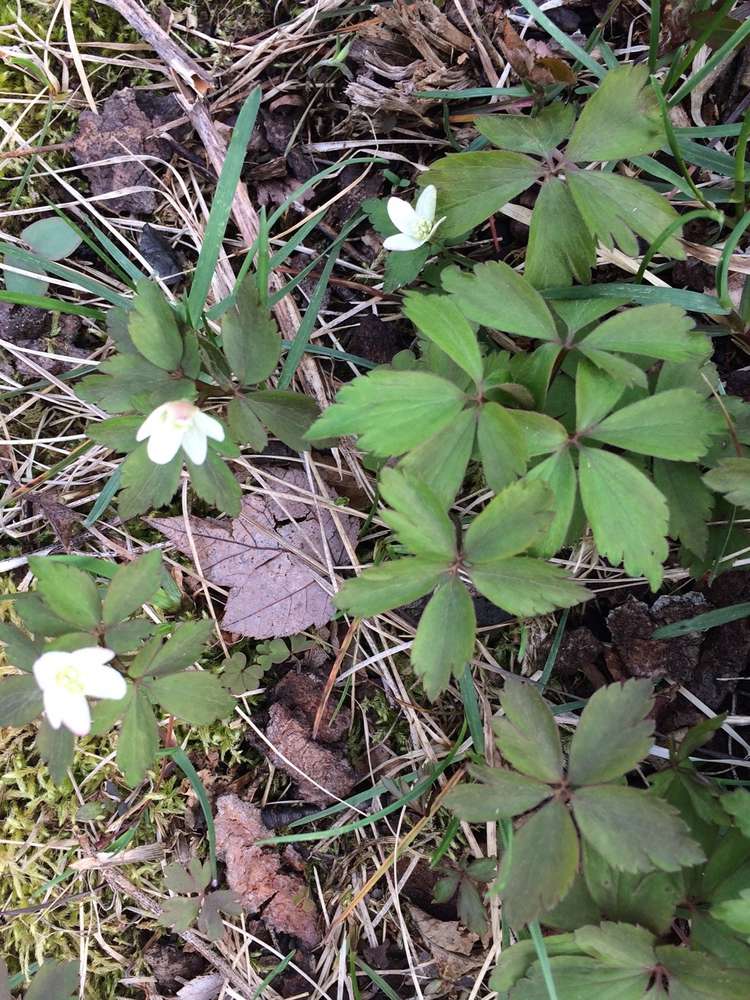 Auntie, good morning. Your plant is Anemone quinquefolia (wood windflower), a native member of the crowfoot family. This is a common, spring-flowering plant of forests (usually moist, deciduous types).