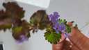 This plant started appearing in May and is still happily growing in my backyard in Westford, MA. It has fringed leaves and dainty purple flowers. It sends out creepers and roots those. What is it?