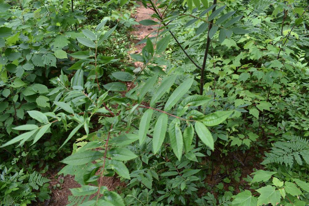 At Quincy Bog in Rumney NH (an area I'm very familiar with), I came upon this solitary specimen of what appears to be Sorbus americana. This individual plant is about 7' tall and stands under a canopy of white pine, but gets a fair amount of sunlight. Is there enough in the attached photos to distinguish it from Rhus glabra? Is there a sure-fire way to distinguish S. americana from R. glabra without a flower?