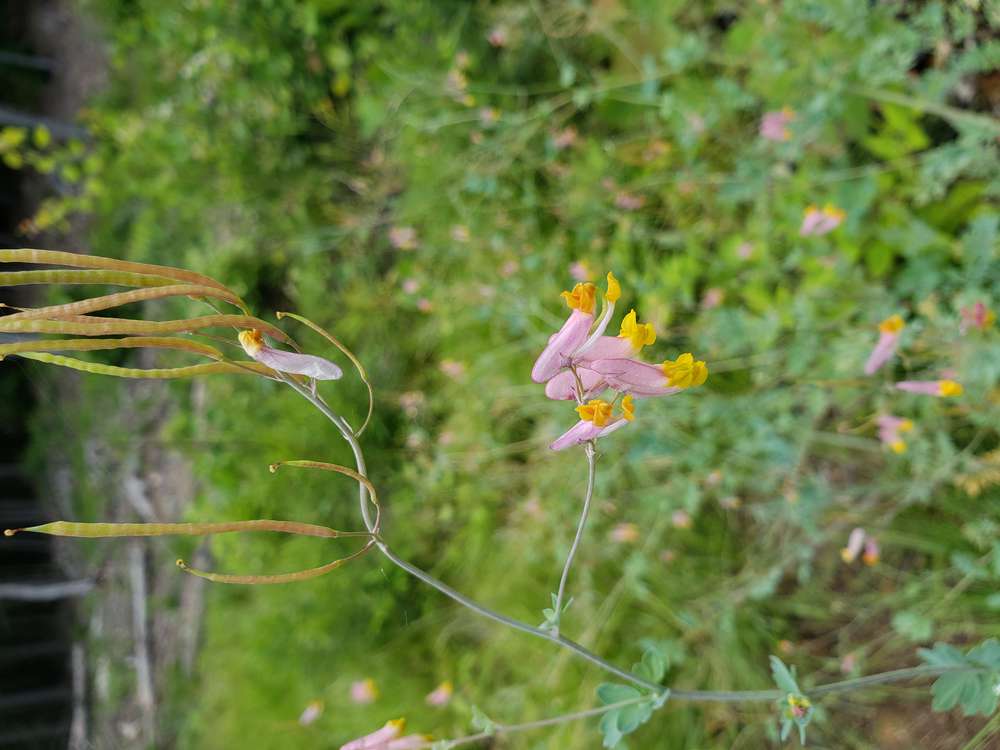 Dear deeken96, the plant you photographed is pale-corydalis (Capnoides sempervirens). This plant usually is found in relatively dry soils, such as outcrops, talus, dry sand, and rocky woodlands. Best wishes.