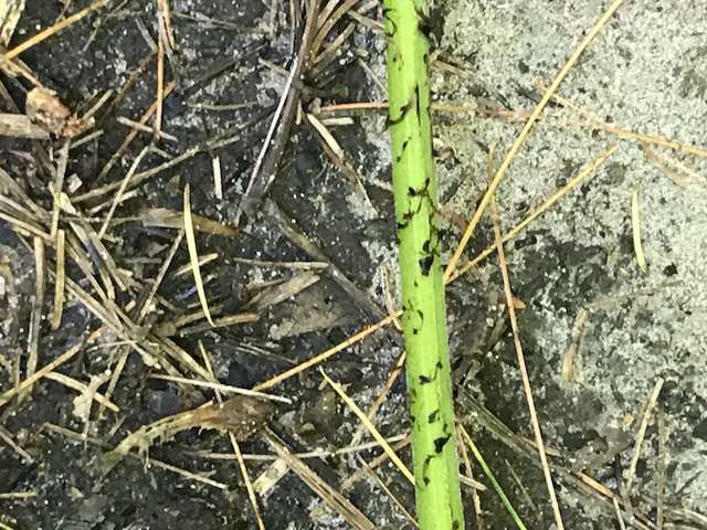 Hi, this fern was found on dry upland,in an oak pine forest in SE CT. It was 3ft in ht. The fronds are clumped, sori were straight and cream colored. The stipe is green with dark brown scales and grooved. The vascular bundle is U shaped. I thinking its Athyrium filix-femina; but the stipe is green (not dark brown or straw colored). Last Sept. the sori were dark brown. Thanks
