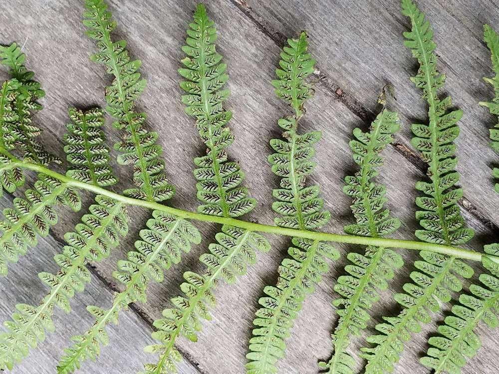 Dear Jbrine1, as best I can tell from the image, it appears to be Deparia acrostichoides (silvery false spleenwort). It is a species that has both hairs and scales on the petiole and elongate indusia, as shown in your images.
