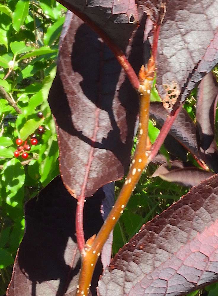 We noticed this tree/shrub on the edge of the Joppa Flats Ed Center property in Newburyport. It looked similar to cherries, except the venation of the leaves seemed different. We wonder if it might be some volunteer invasive exotic.