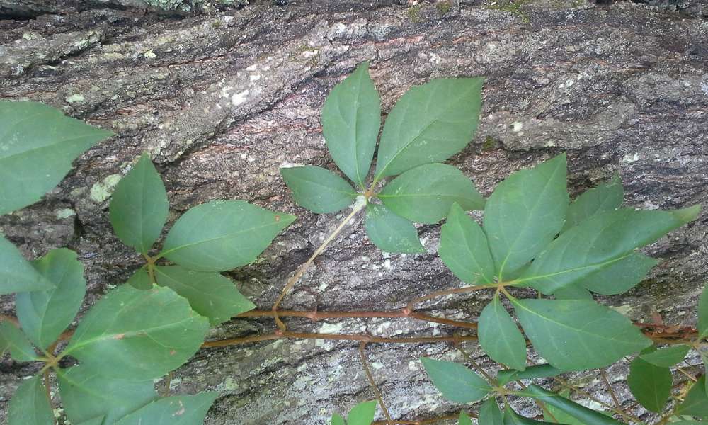 Dear dillon_shaun@yahoo.dk, you have photographed a native species of Parthenocissus, a genus of lianas belonging to the grape family. I can't see the adhesive disks well enough, but the short petioules suggest this is Parthenocissus quinquefolia (Virginia creeper).