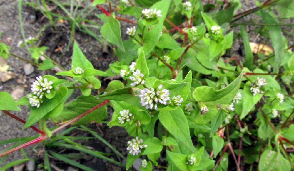 Some kind of persicaria pr polygonum? I checked it against everything in those genera on GoBotany and didn't see a match with the stout purple-white cloverlike flowers, the red stems/joints, and the wide-ish leaves (sans brown thumbprints). Growing in sand along Mink Brook at the Mink Brook Nature Preserve in Hanover, NH, 1 Sept. 2018. Thanks for any help.