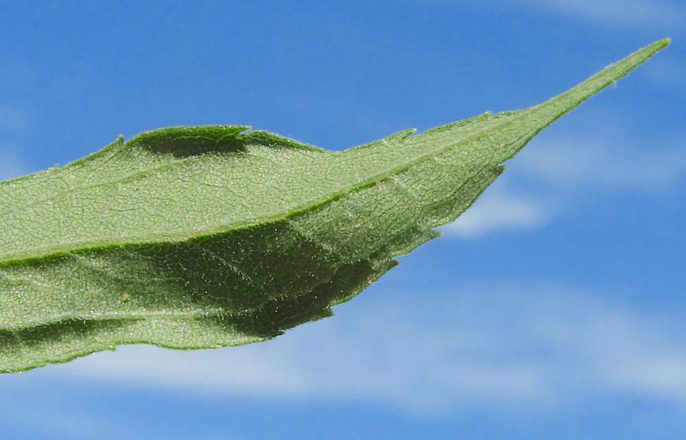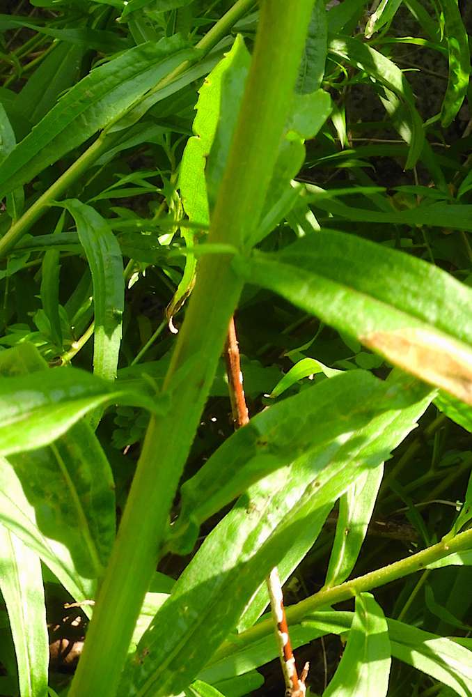 I'm trying to decide whether this Solidago is altissima or canadensis. I believe altissima is supposed to be hairy on the undersides of the leaf on both the veins and in between. As you can see from the underside in the photo, you can see hairs all over, but only if the light is just right. I'm not sure what constitutes "hairy." This is on the edge of the parking lot at Joppa Flats Education Center, Newburyport, close to a salt marsh along the Merrimack River.
