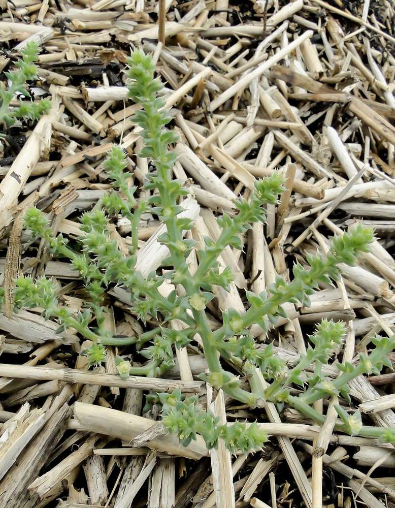 Dear DonLemieux, good afternoon. You've photographed Salsola kali (saltwort), a member of the expanded amaranth family. The leaves and sepals tipped with a firm spine are good identifying characteristics for this halophyte.
