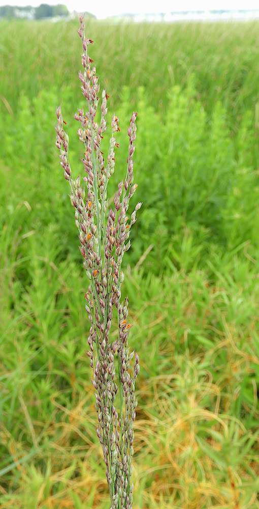 I'm sort of between Switch Panicgrass (Panicum virgatum) and Fall Panicgrass ( P. dichotomiflorum) on this one. (Of course, with my level of expertise, it could be neither! e.g., P. amarum) This is at the upper level of a salt marsh at Joppa Flats Ed. Center, Newburyport. Taken 7/17/18.