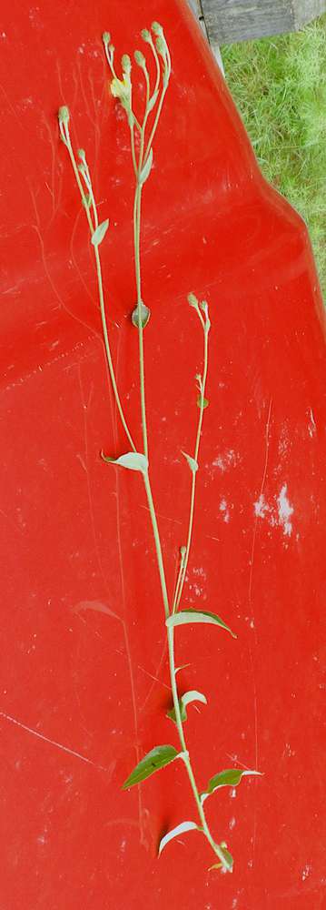 Dear chaffeemonell, the tall height of the capitulescence (i.e., array of flower heads) suggests this is Hieracium saboudum (Savoy hawkweed). This would be a new state record for NH (to my understanding). Any chance I can discuss with you getting a collection? If so, please email at ahaines[at]newenglandwild.org and I can help you further. Thank you.
