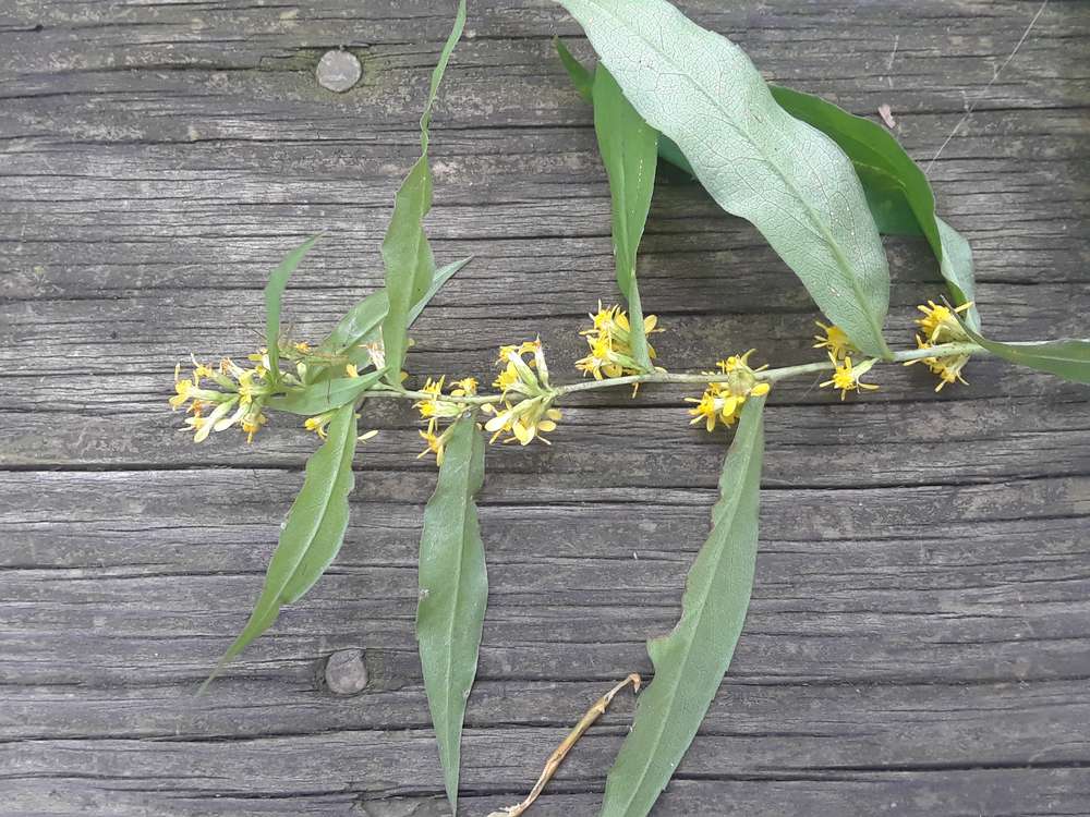 Dear plant_ted, you've photographed Solidago caesia (blue-stemmed goldenrod). It is a native species of forests and forest edges. In my area it is one of the later flowering species, and is visited by native bees. Best wishes.