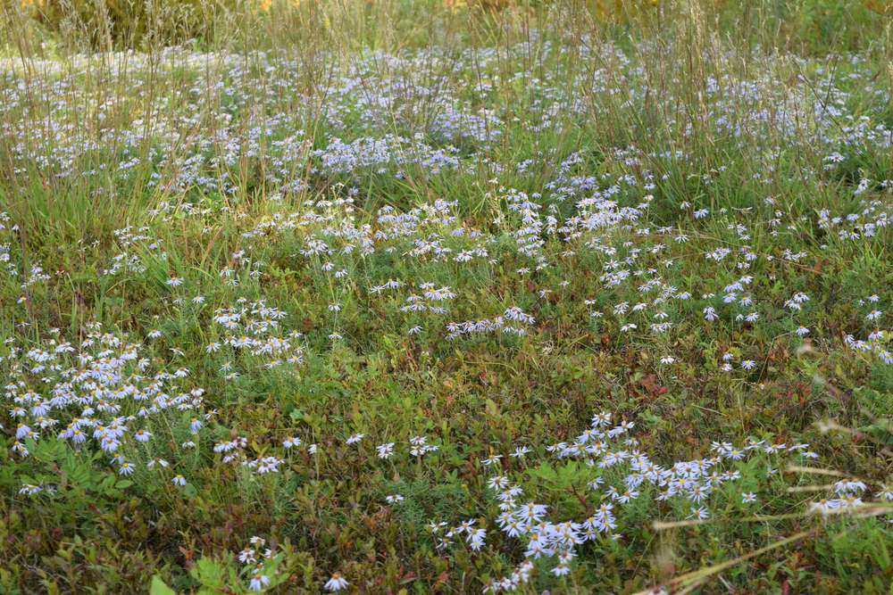 Howdy. Is Lonactis linarifolia sticky to the touch? Been meeting this (or other?) species in various locations around freeport Maine. Here we are with blueberry & bluestem. At first I had thought Eurybia spectabalis, due to sticky stem, but it looks like that species is not in Maine. In either case, it's causing a lot of delight these days.